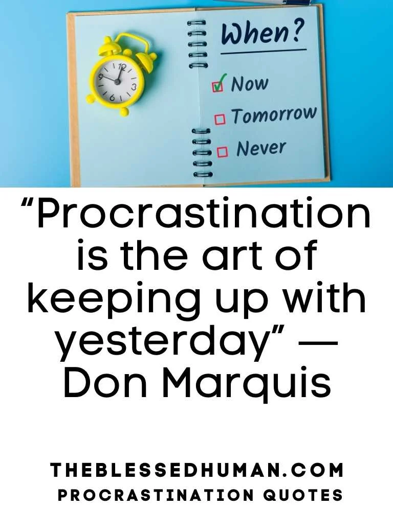 - “Procrastination is the art of keeping up with yesterday” ― Don Marquis
